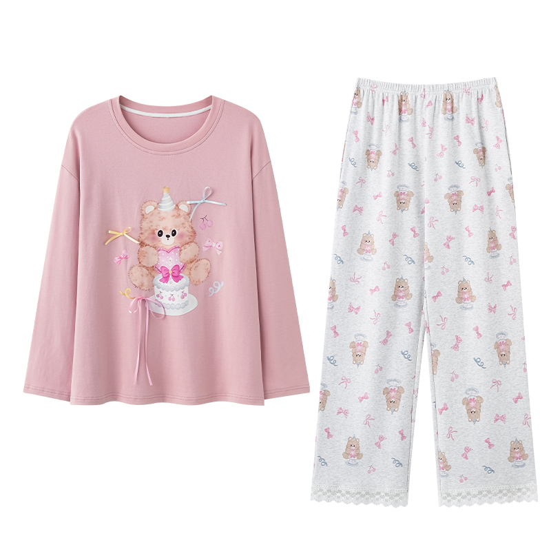 家居服套装 长裤 棉柔卡通甜美可爱少女长袖 猫人睡衣女春秋2025新款