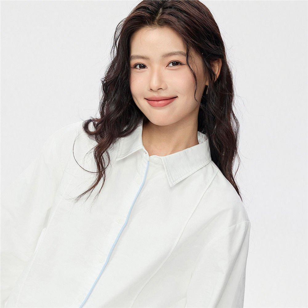 拼接风格 w2x2025秋季 衬衫 含亚麻软糯手感长袖 设计感休闲衬衣 新款