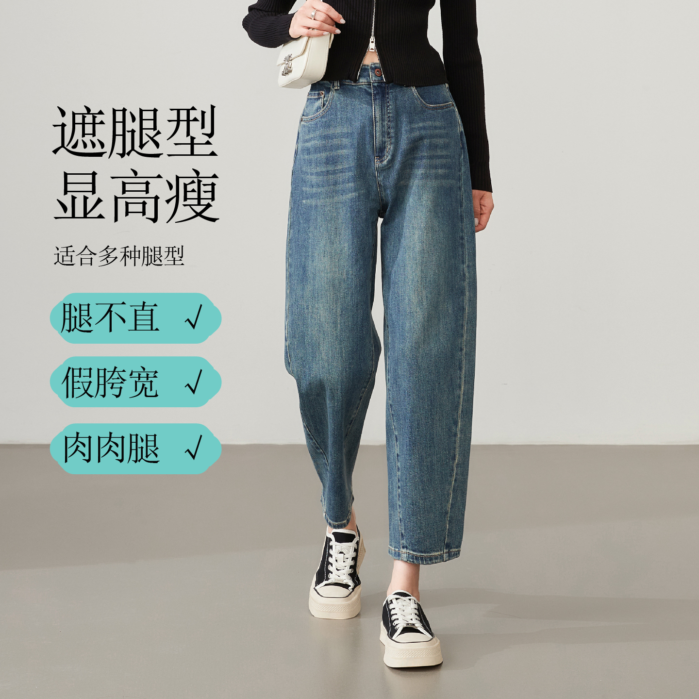 女冬40933286 100%棉复古高腰阔腿直筒牛仔裤 艾诺丝雅诗 建模裤