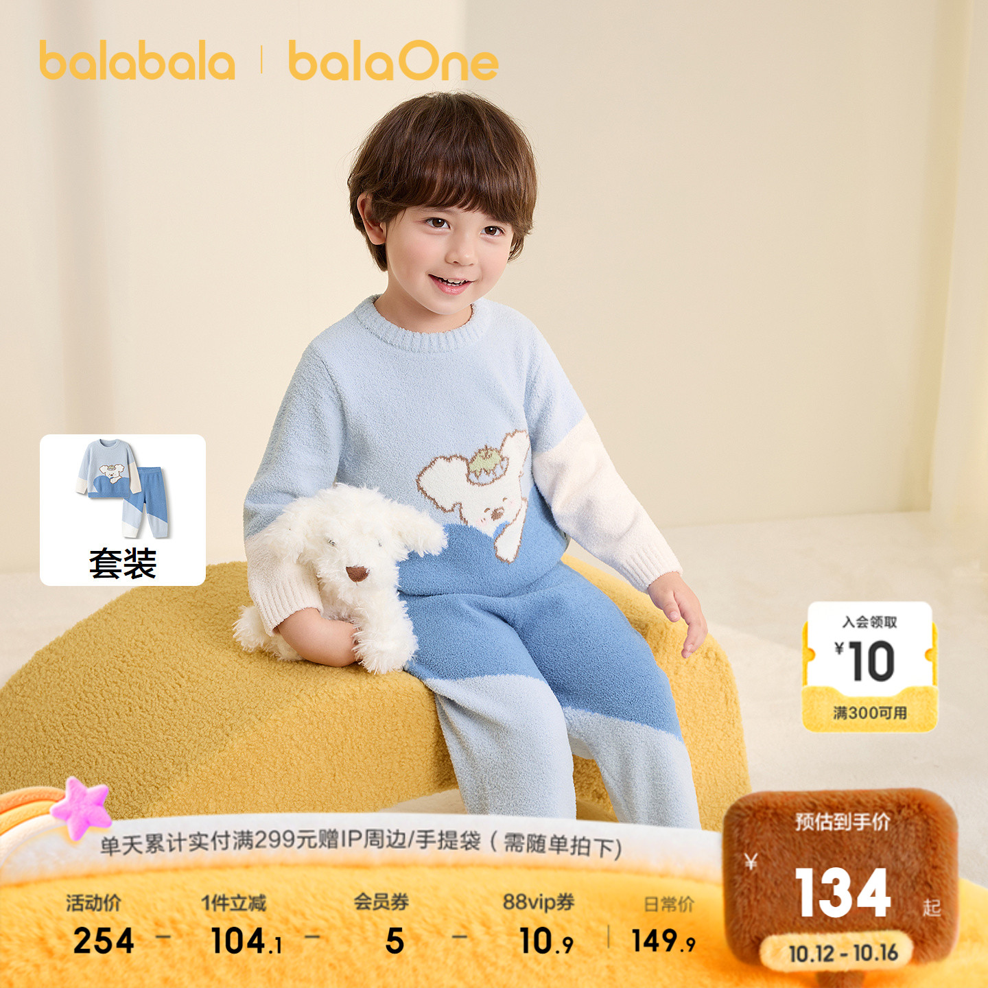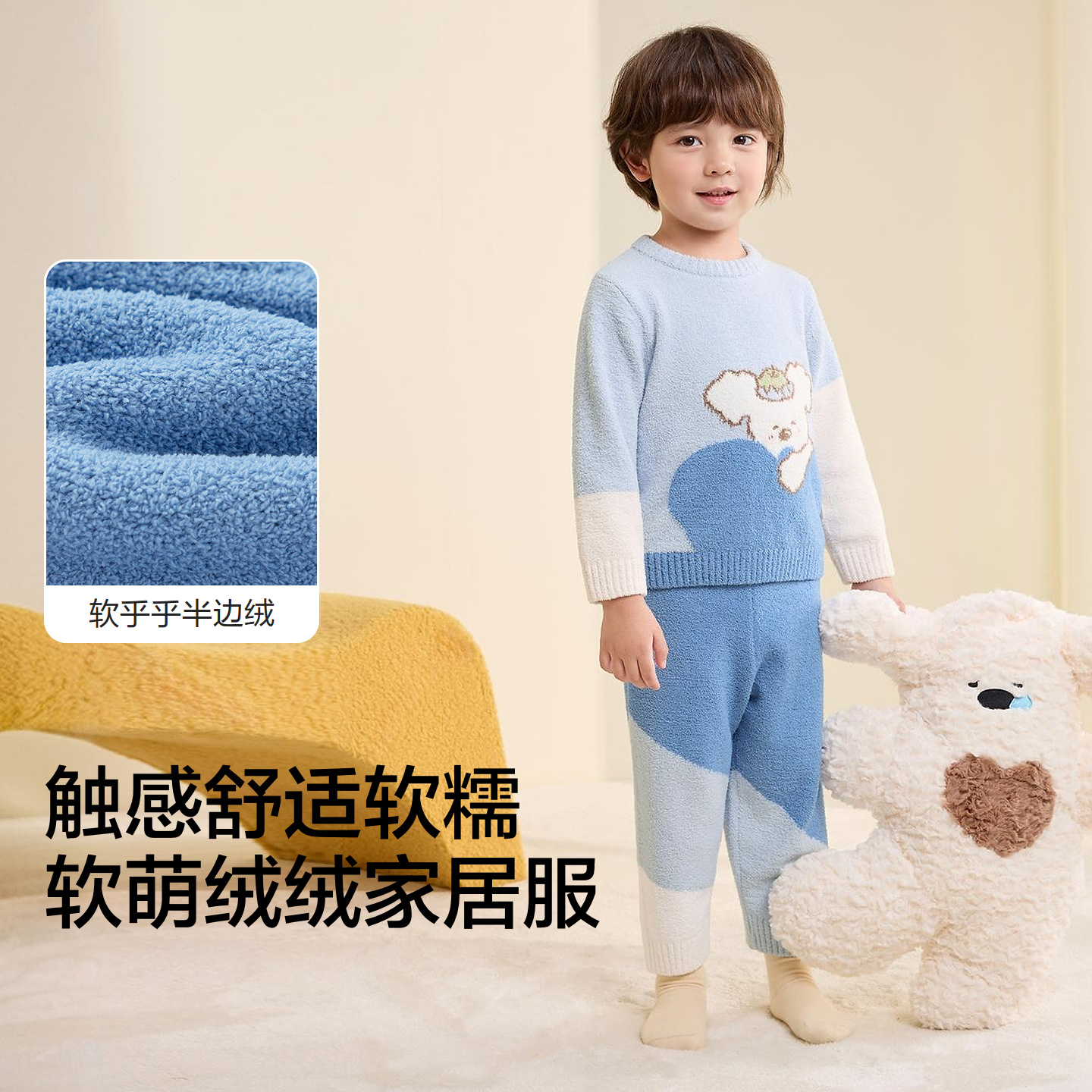巴拉巴拉balaOne宝宝睡衣套装 半边绒男女童家居服保暖 2025冬新款