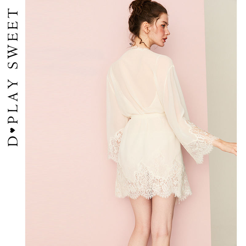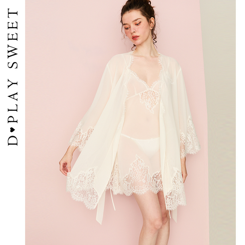 DPLAYSWEET法式 性感家居服晨袍2025年秋 轻奢蕾丝拼接睡袍睡衣薄款