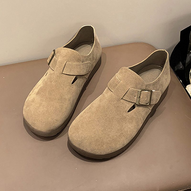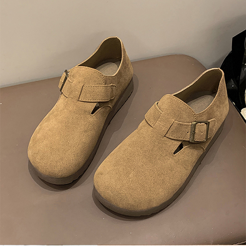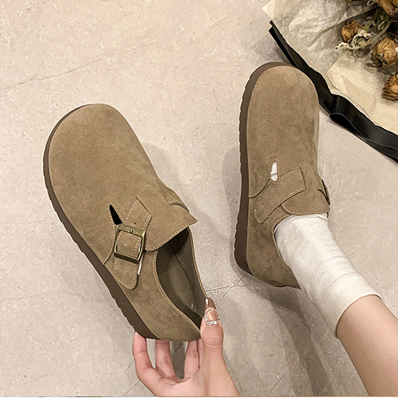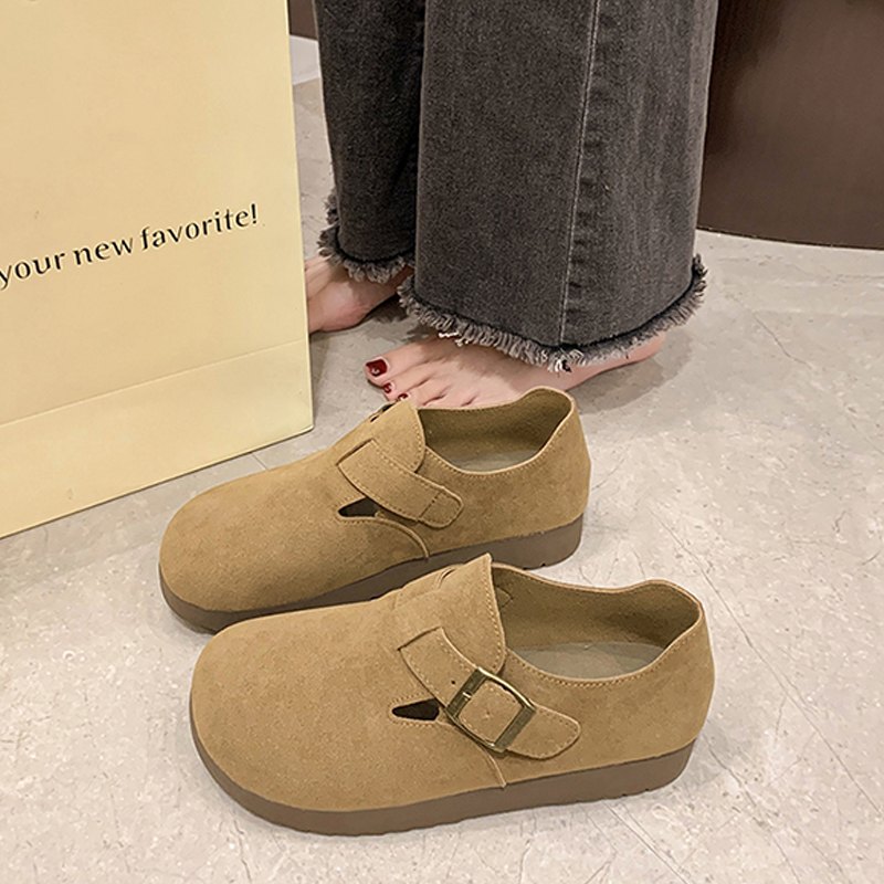 春秋季 子2025新款 一脚蹬单鞋 全包博肯鞋 平底 厚底勃肯鞋 豆豆鞋 女鞋