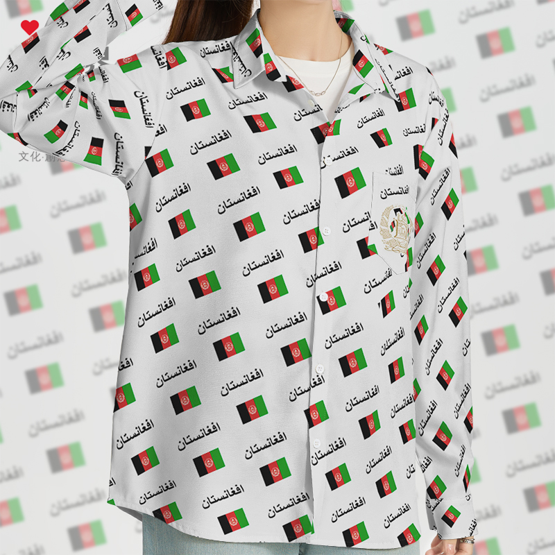 花衬衣设 男女春秋季 无界 衬衫 阿富汗Afghanistan国家国旗满印长袖