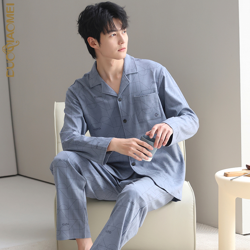 休闲简约可外穿居家服套装 2025年新款 春秋纯棉长袖 多俏美睡衣男士