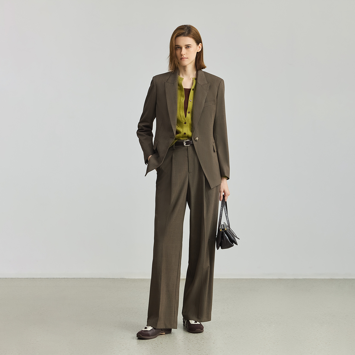 高腰垂感双褶小个子棉羊毛慵懒风直筒宽松 女春秋款 灰色西装 阔腿裤