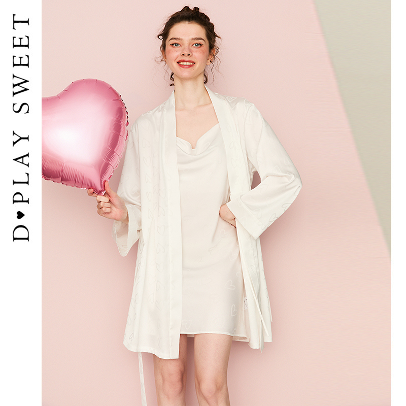 DPLAYSWEET法式 轻奢缎面宽松舒适晨袍睡衣爱心烫钻提花睡袍2025年
