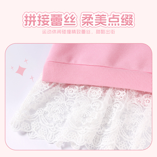拉夏贝尔儿童春秋卫衣2025新款 女童蕾丝花边上衣女孩甜美连衣裙
