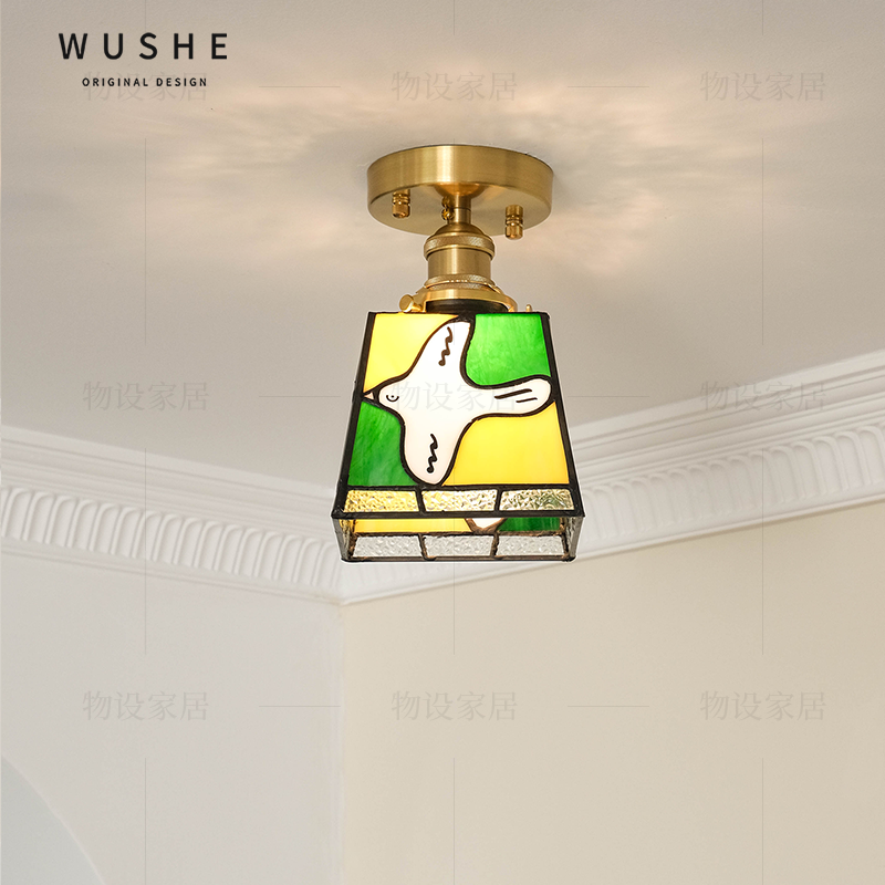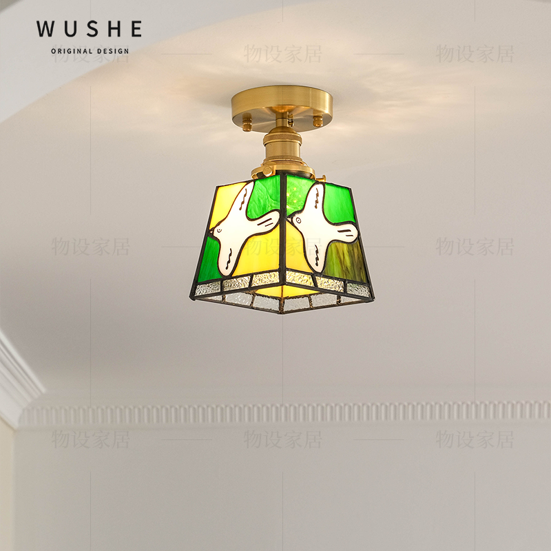 法式 中古风和平鸽创意卡通玄关吸顶灯入户过道灯彩色玻璃吸顶灯