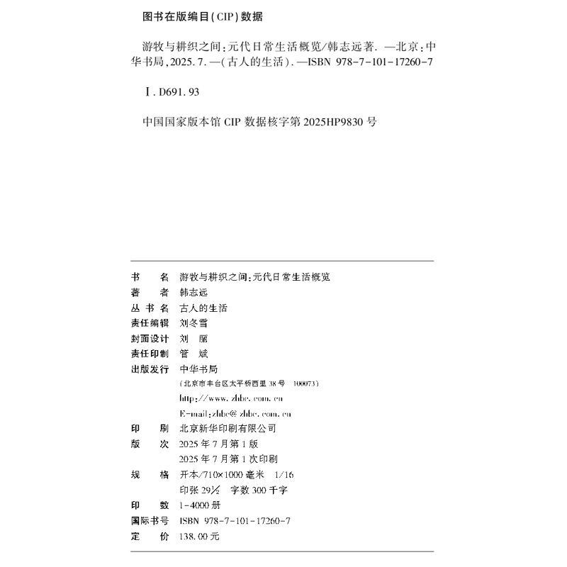 游牧与耕织之间:元 代日常生活概览韩志远著历史知识读物中华书局新华书店正版