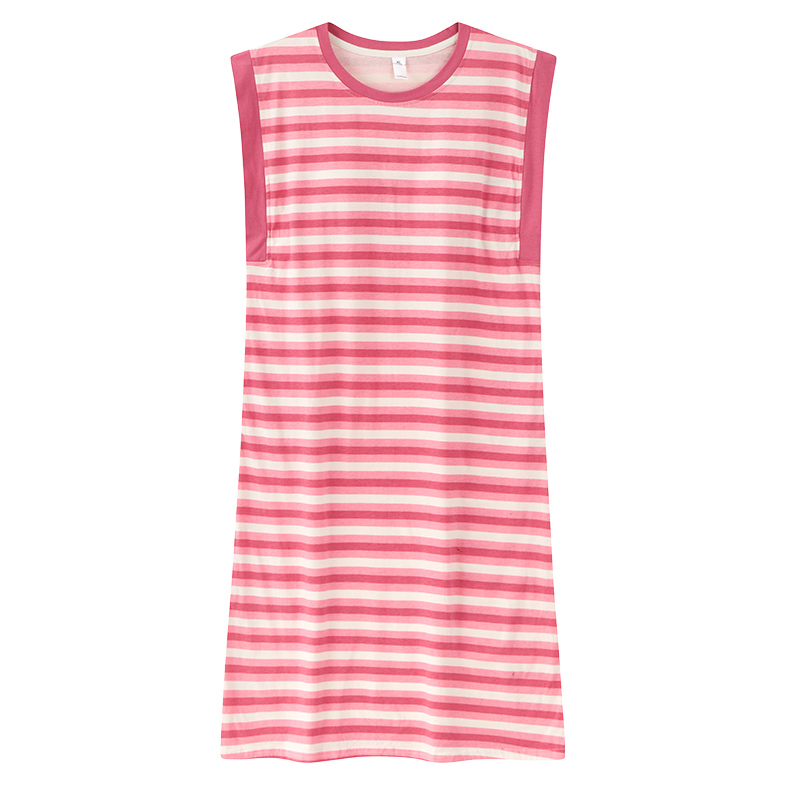 大码 长裙家居服夏款 条纹休闲可外穿 纯棉短袖 悦内睡裙女士睡衣夏季