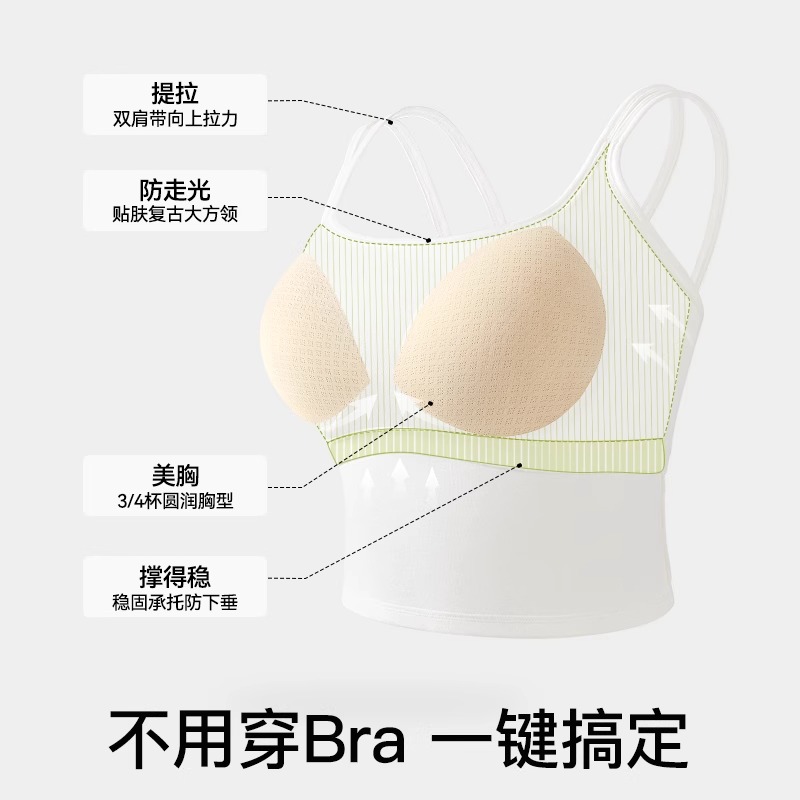 白色吊带背心女带胸垫内搭夏季 文胸美背一体纯欲打底 外穿2025新款
