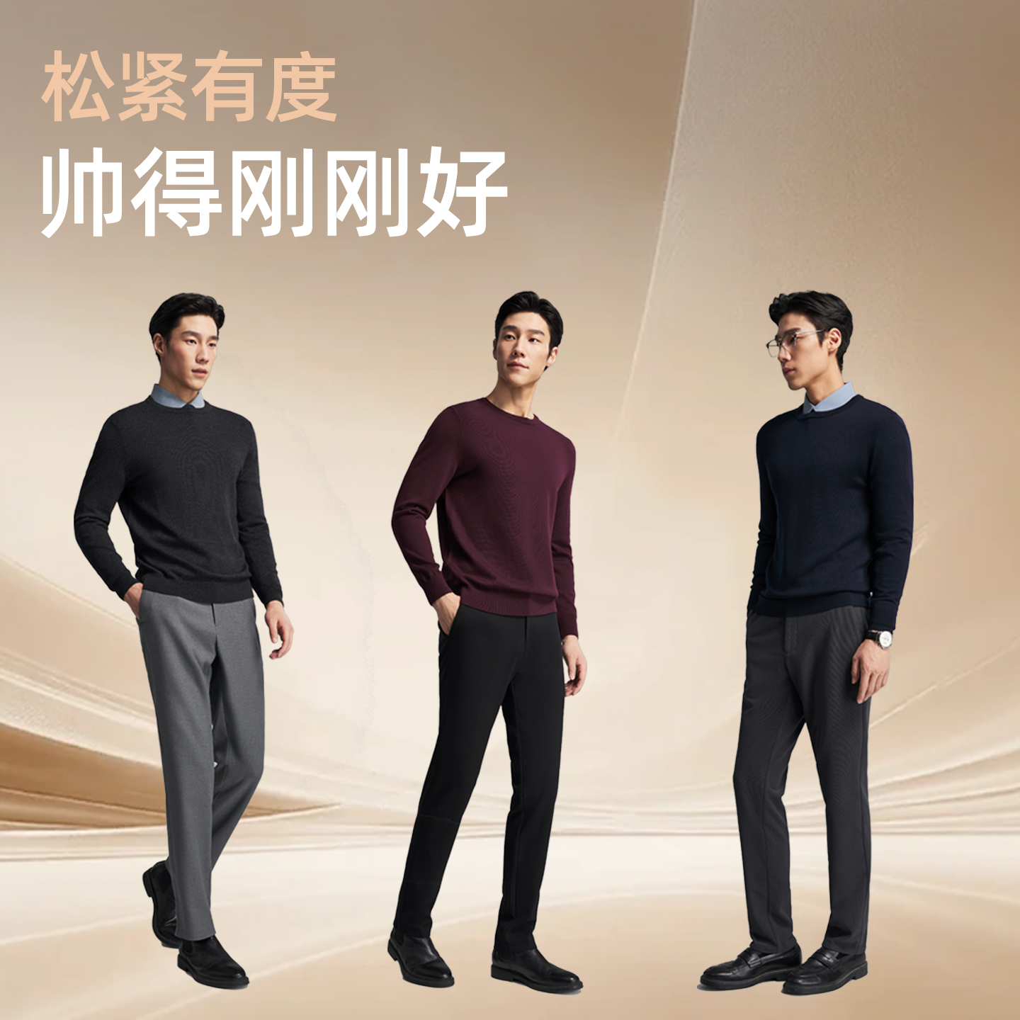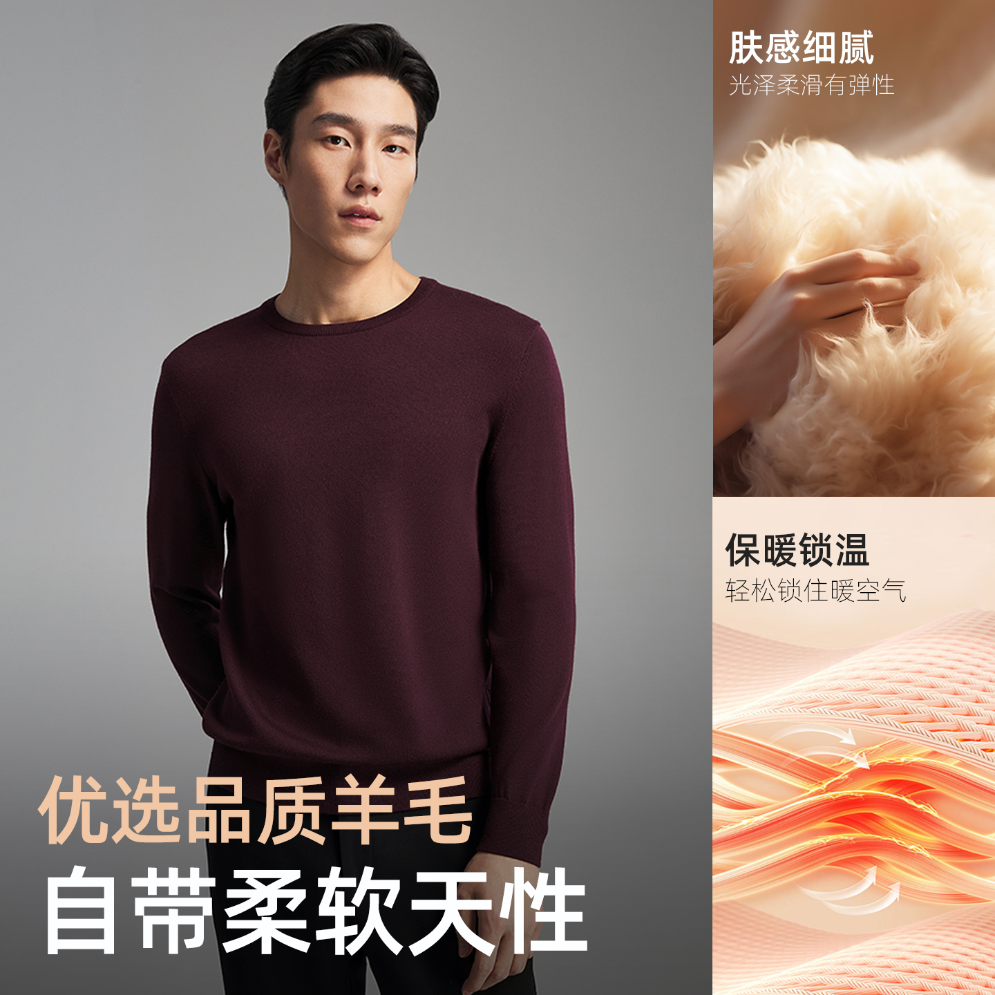 100%羊毛 秋冬时尚 劲霸男装 针织衫 毛衣圆领套头羊毛衫 男士
