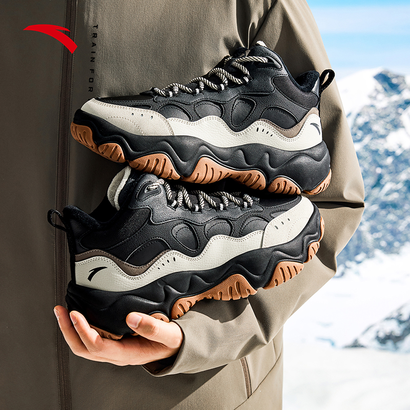 皮面休闲鞋 安踏流萤 新款 男2025冬季 112548953 加绒加厚保暖棉鞋