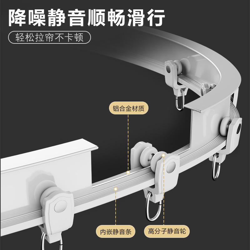 窗帘轨道静音滑轨轮挂钩式 窗帘杆飘窗u形滑道弯轨阳台导轨铝合金