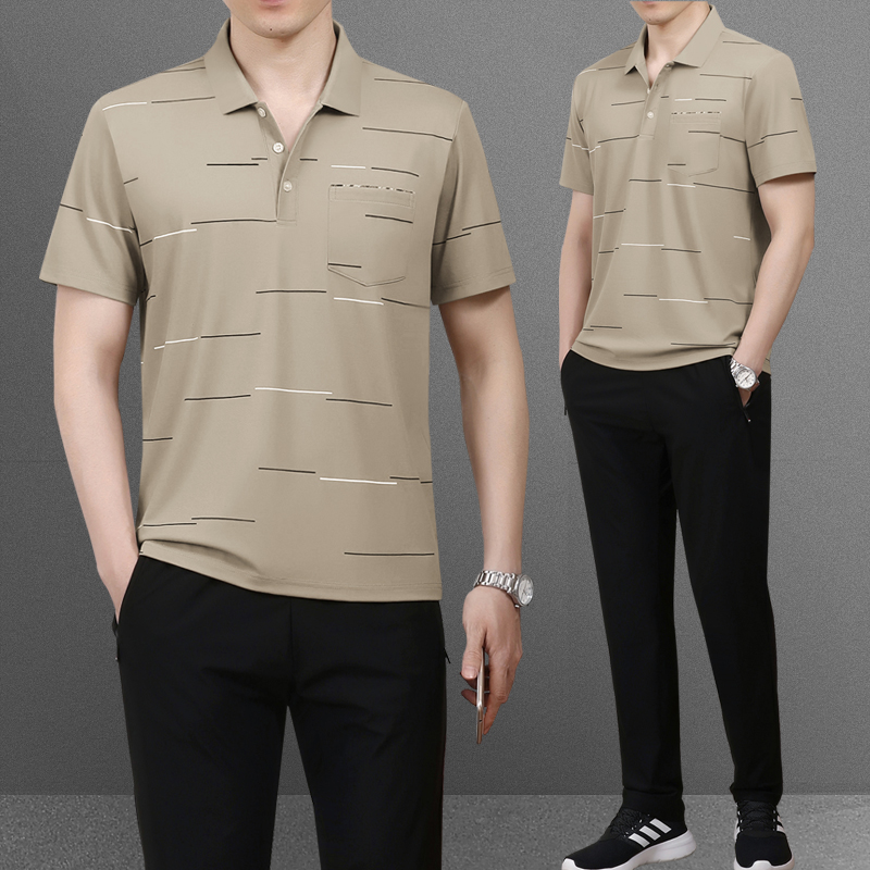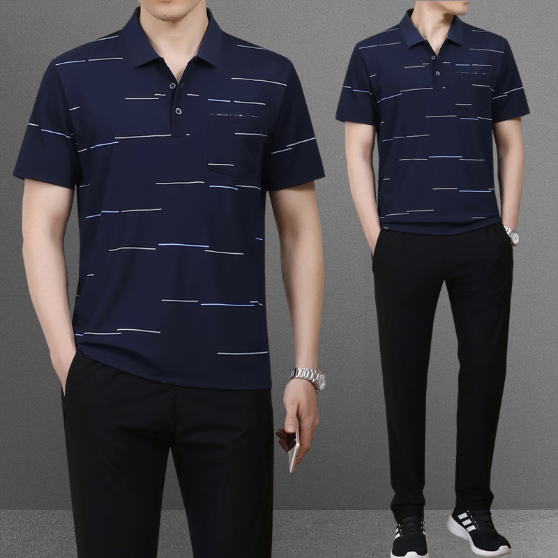 两件套中老年人休闲运动服套装 爸爸夏装 t恤长裤 冰丝短袖 中年男士