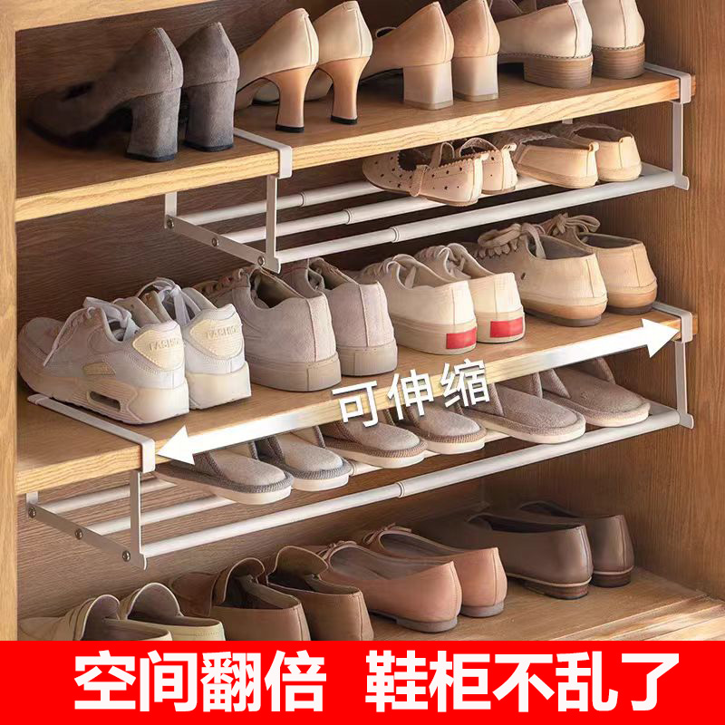 托下挂篮置物架整理鞋 柜分层隔板鞋 子托架省空间 架家用鞋 可伸缩鞋