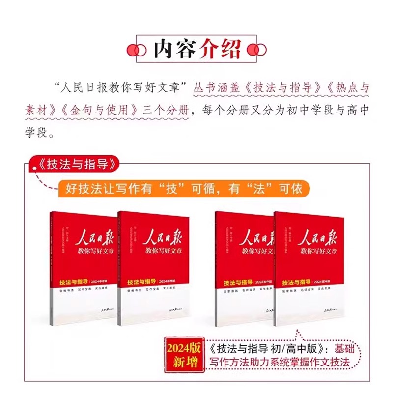作文热点素材增补版 金句使用初中版 人民日报教你写好文章2025中考高考版 技法指导新闻报道时政摘抄七八九年级语文阅读书 增补版