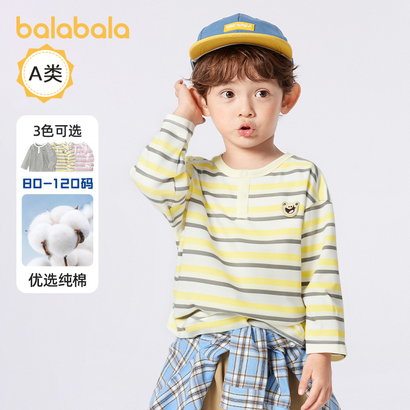 童装 巴拉巴拉男童长袖 新款 儿童上衣2025秋季 小 t恤宝宝纯棉打底衫