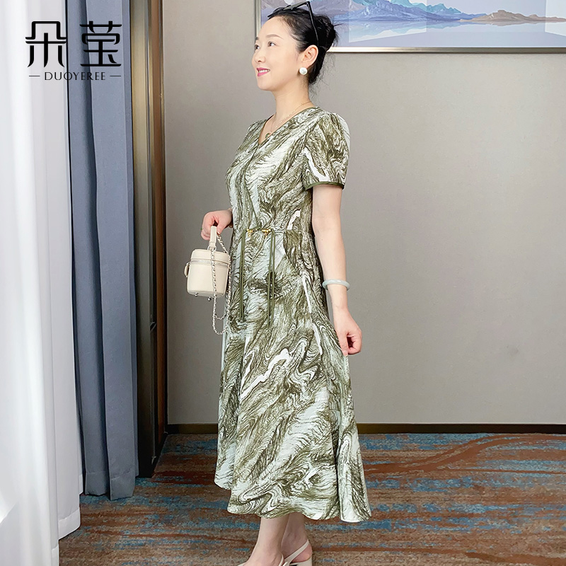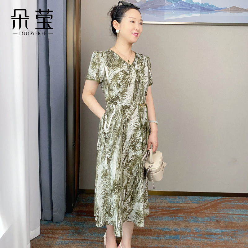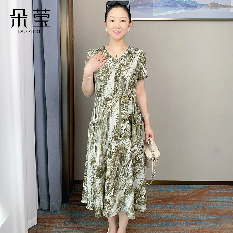 显瘦长裙中老年人气质裙子 2025新款 朵莹中年妈妈夏装 连衣裙中长款