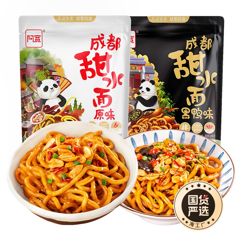 四川阿宽甜水面袋装 速食早餐泡面乌冬面带酱免煮速食方便面干拌面