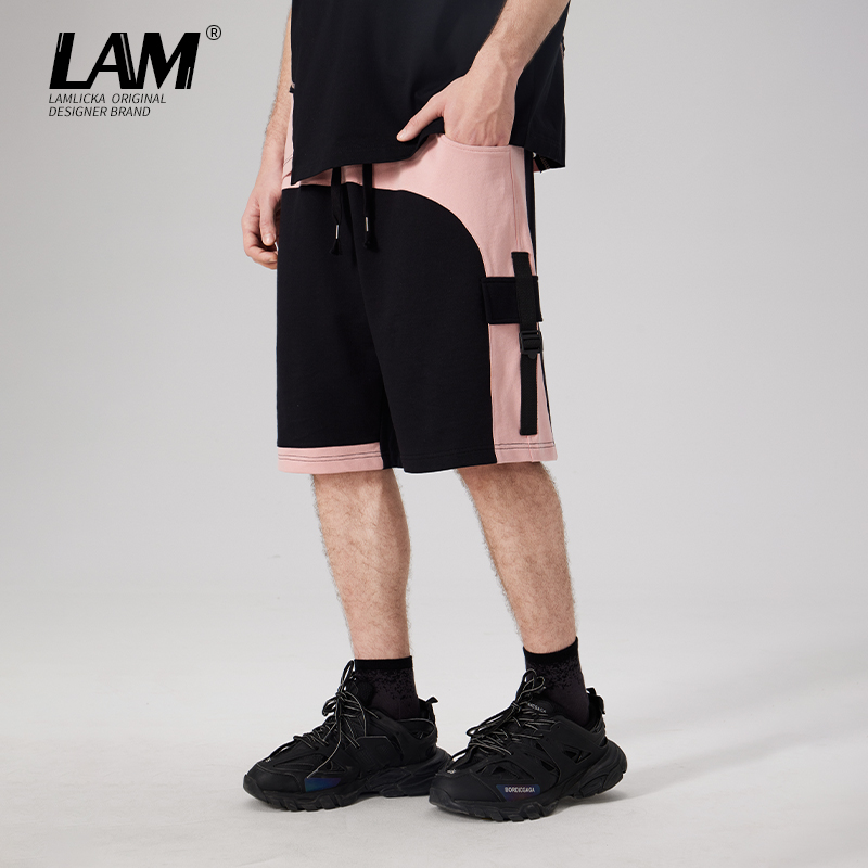 男休闲五分裤 直筒卫裤 子宽松 拼接撞色刺绣薄松紧短裤 LAMLICKA夏季