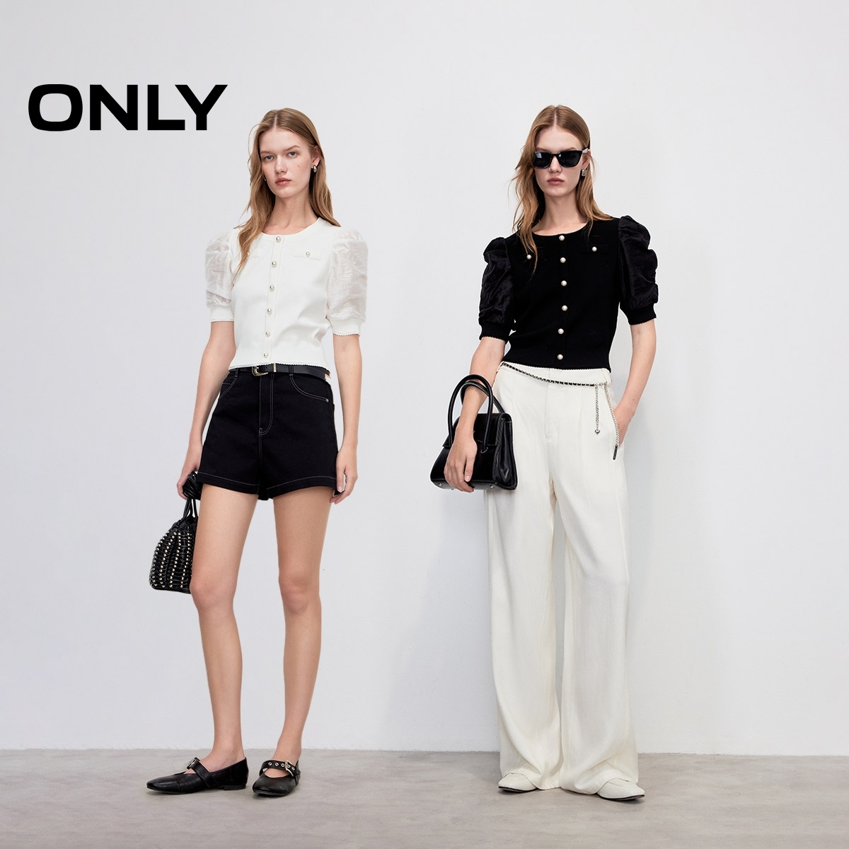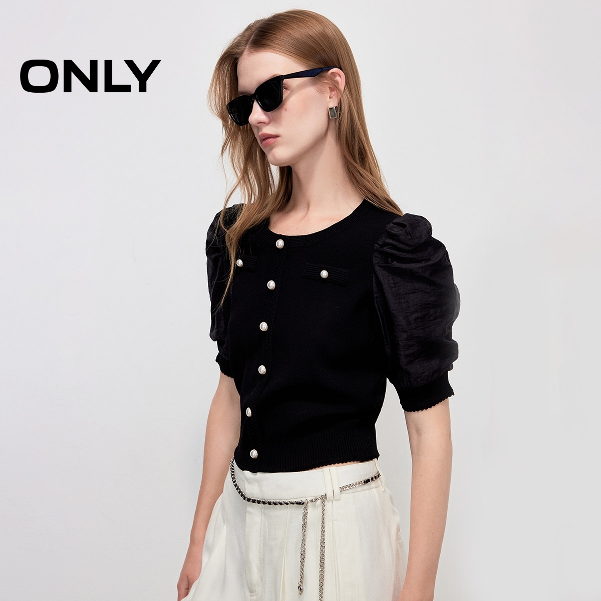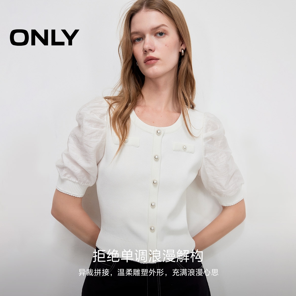 新款 针织衫 浪漫优雅拼接泡泡袖 圆领显瘦短款 女 短袖 ONLY2025夏季