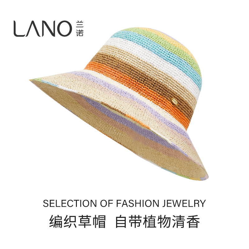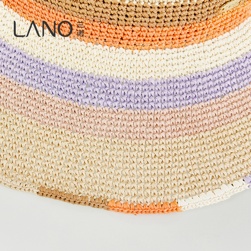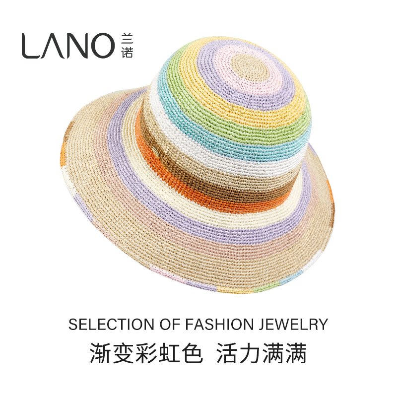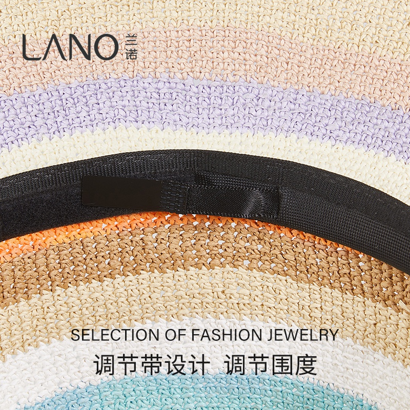 兰诺彩色草帽女海边度假2025春夏季 大帽檐大头围防晒遮阳帽子 新款