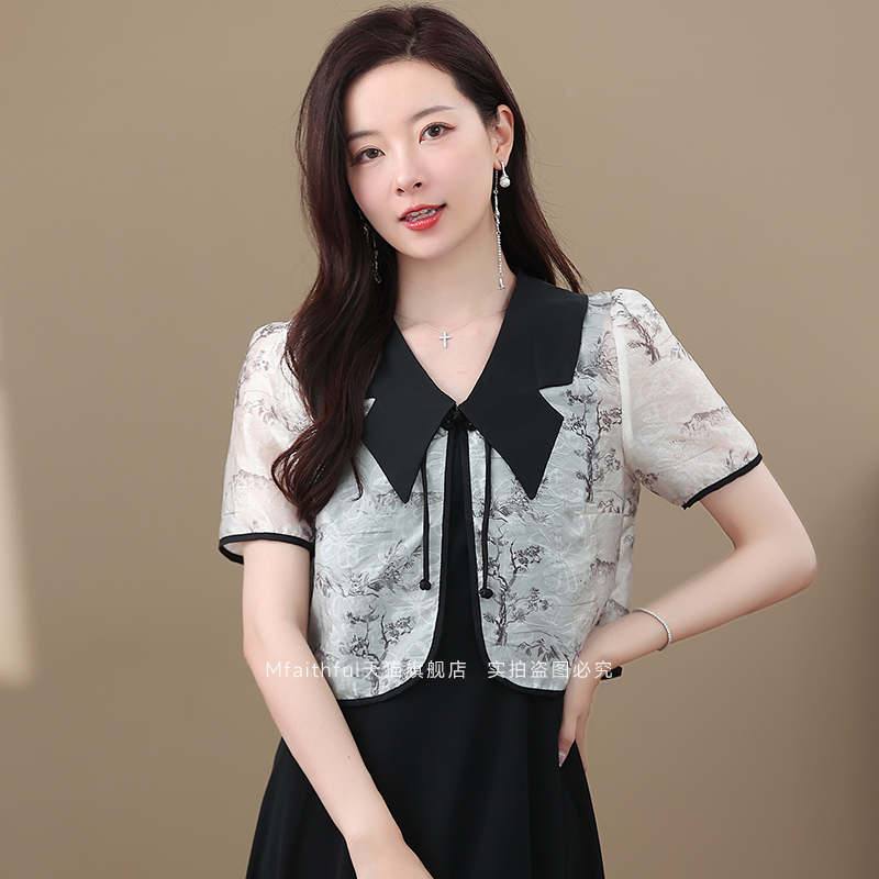 今年流行显瘦气质新中式 小披肩外搭夏季 女装 大码 上衣 配吊带裙子