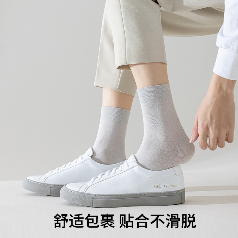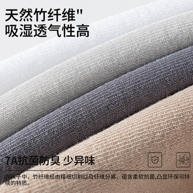 袜子男纯棉春秋款 中筒袜 短袜7a抗菌灰色无骨防臭脚吸汗青少年男士