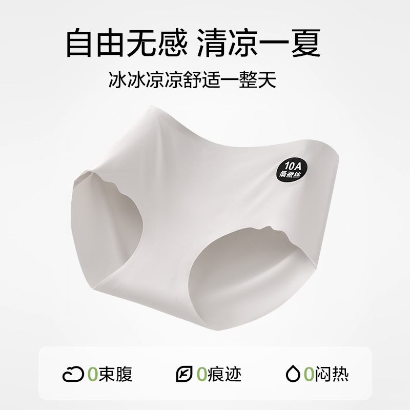 猫人冰丝内裤 女桑蚕丝抑菌加长裆无感奶皮无痕瑜伽运动女士三角裤