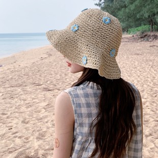海边沙滩帽草编田园风森系太阳帽子 2025新款 夏季 防晒遮阳草帽女款