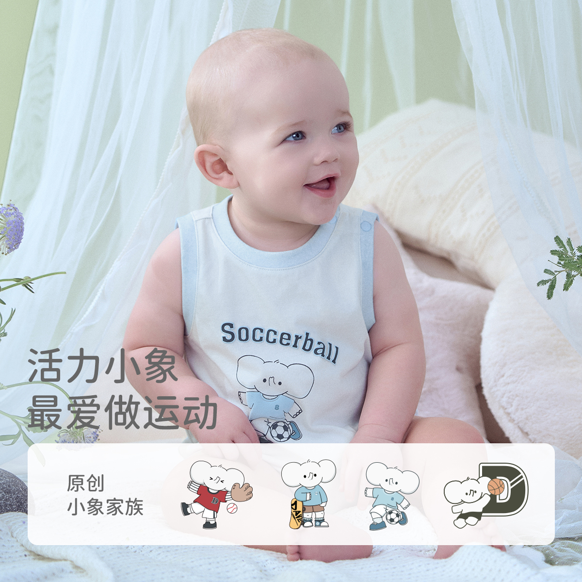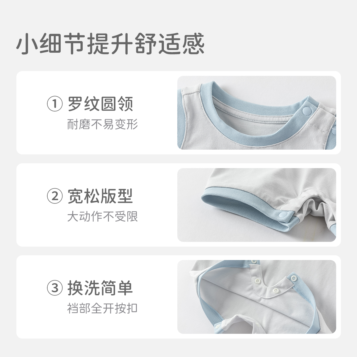 戴维贝拉A类新生儿抗菌爬服男宝连体衣2025夏装 婴儿哈衣 新款