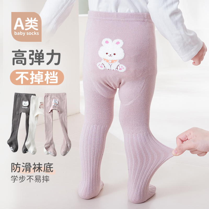 袜棉女童可爱卡通连脚袜防滑 女宝宝大PP打底裤 婴儿连裤 袜白色春款