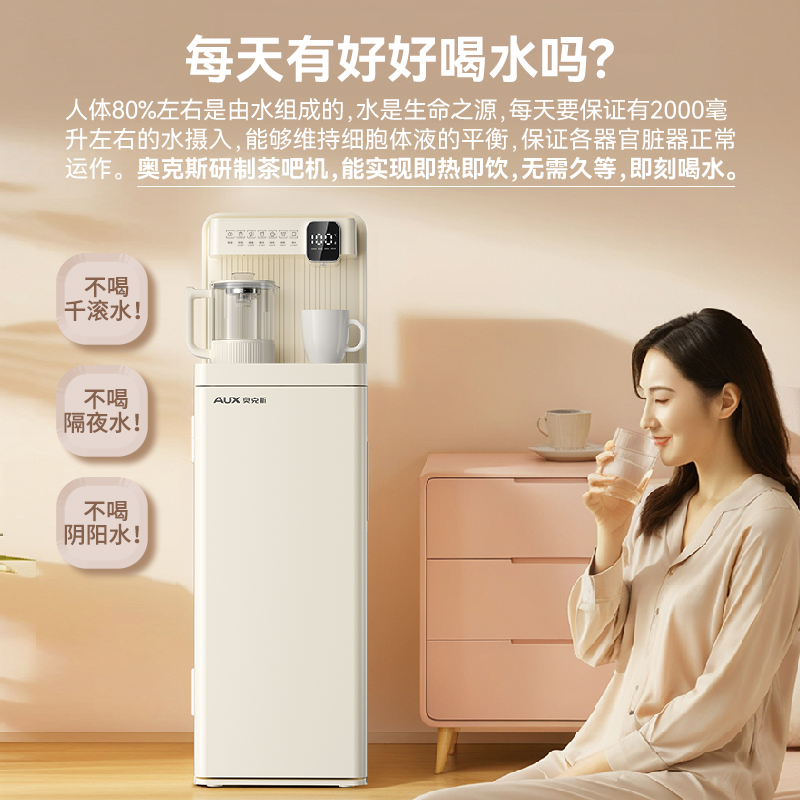 奥克斯即热式 饮水机家用高端智能置物柜一体速热泡茶机 茶吧机新款