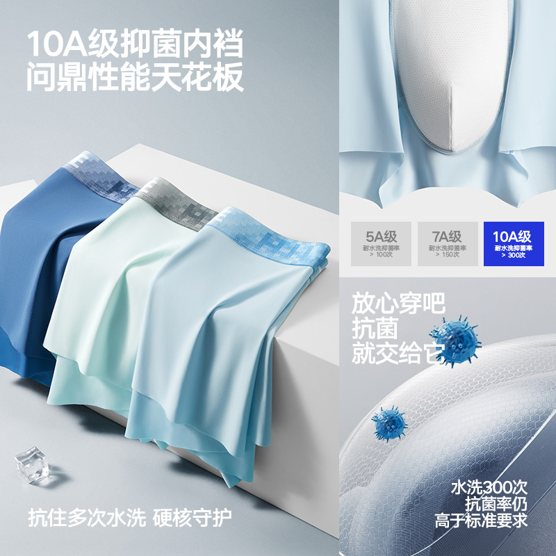 10A抗菌轻薄透气无痕高弹平角短裤 HLA 男士 冰丝内裤 海澜之家夏季