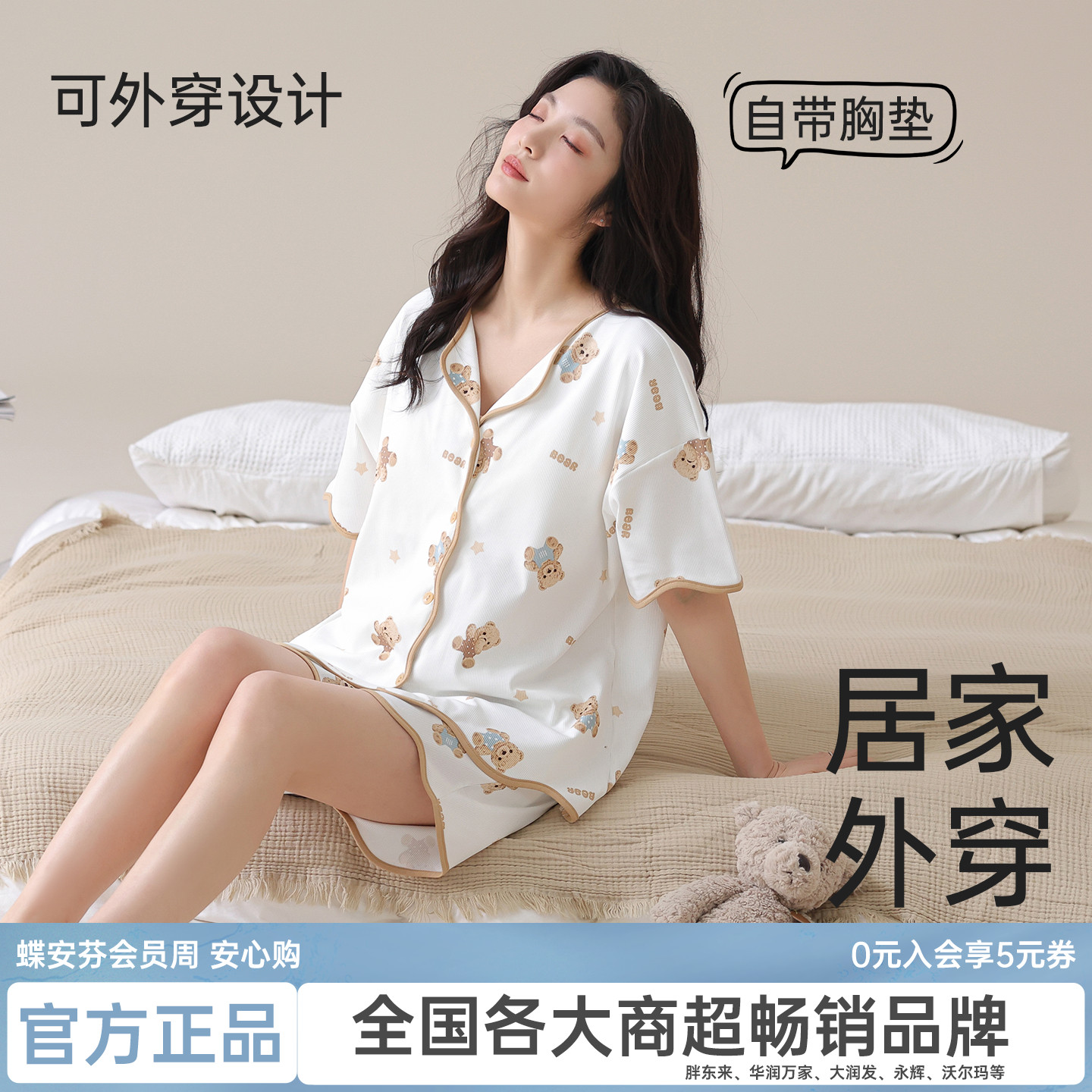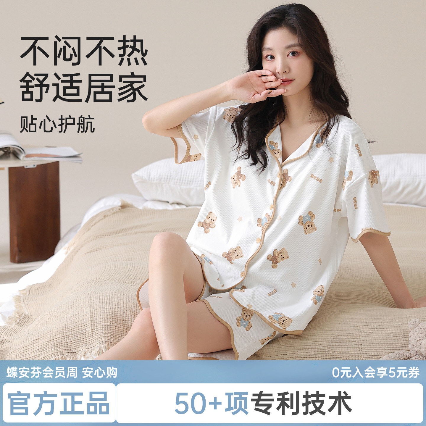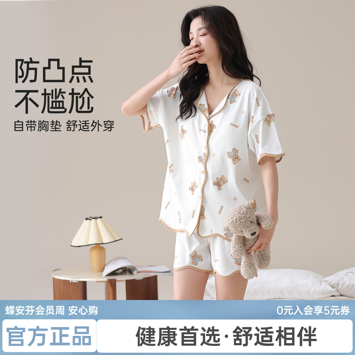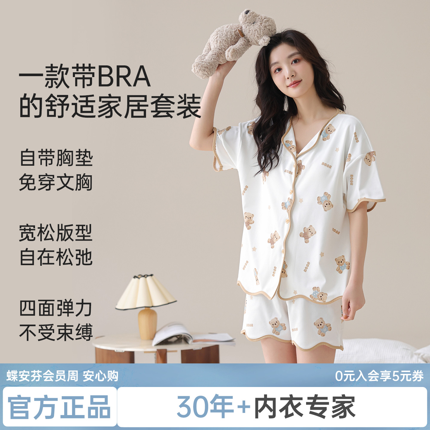 新款 蝶安芬泰迪熊家居服女印花睡衣带胸垫一体可外穿夏季 透气短袖