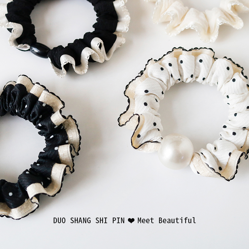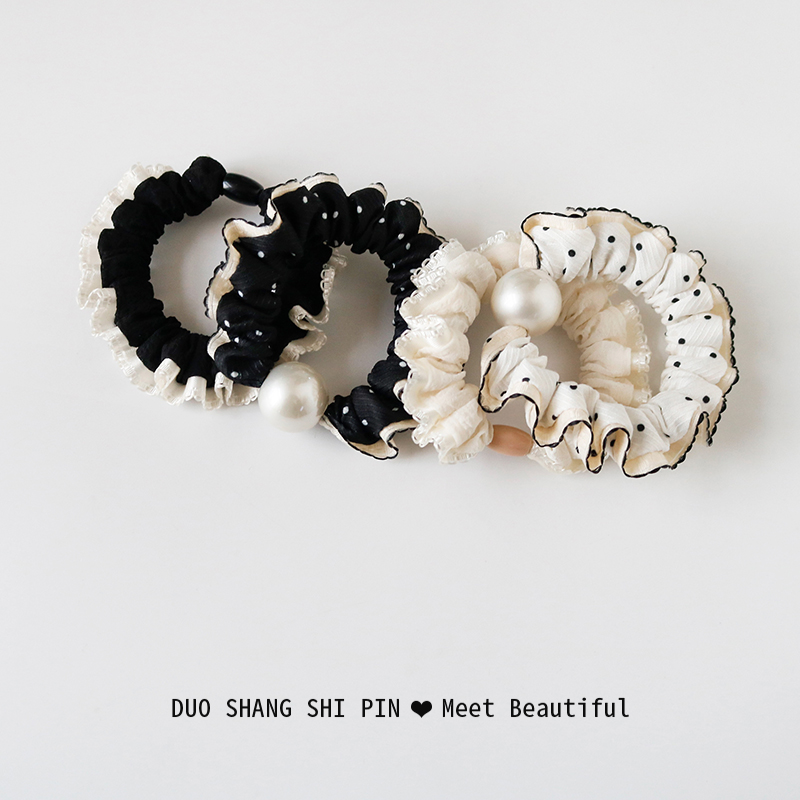 韩国小波点发圈卷边小肠圈发绳蕾丝发饰少女头绳高级感扎头发皮筋