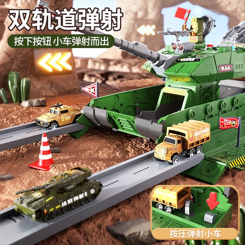 超大号坦克玩具车男孩益智套装 3儿童声光变形轨道弹射合金汽车6岁