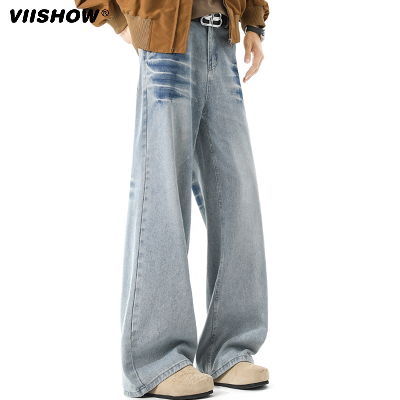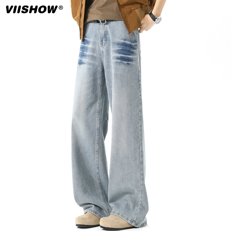 VIISHOW街头复古做旧直筒牛仔裤 男潮牌宽松阔腿休闲百搭老爹长裤