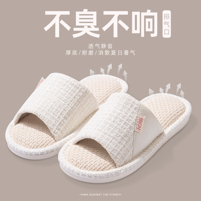 男四季 防滑日系小香风透气室内静音居家软底拖鞋 春秋女款 亚麻拖鞋