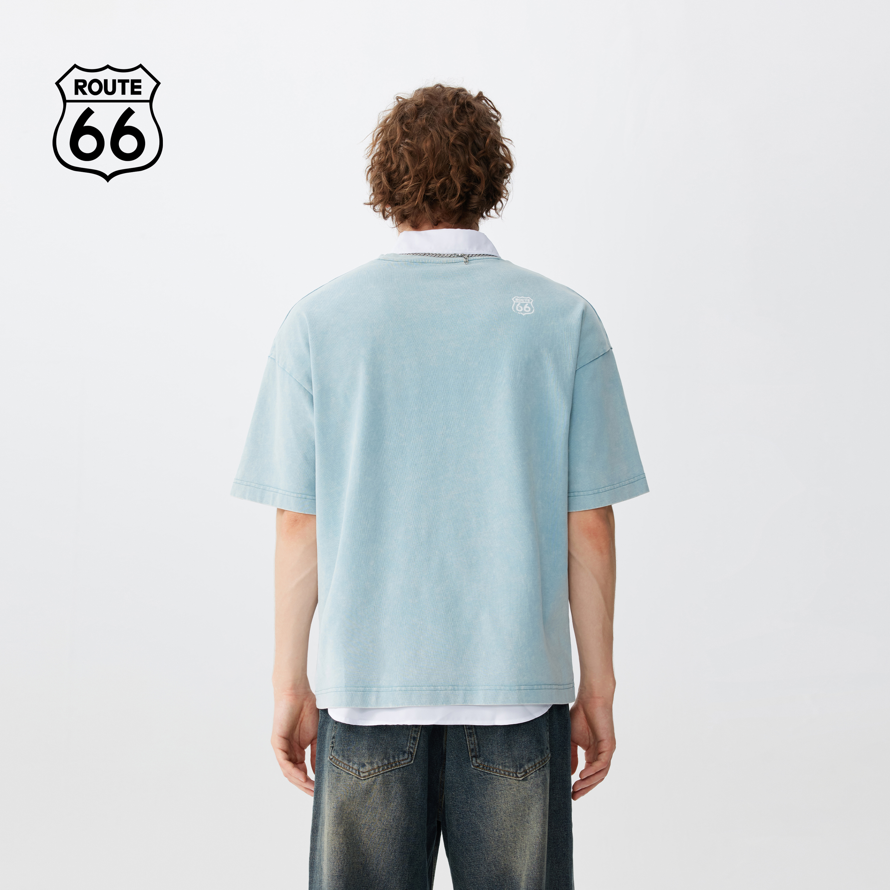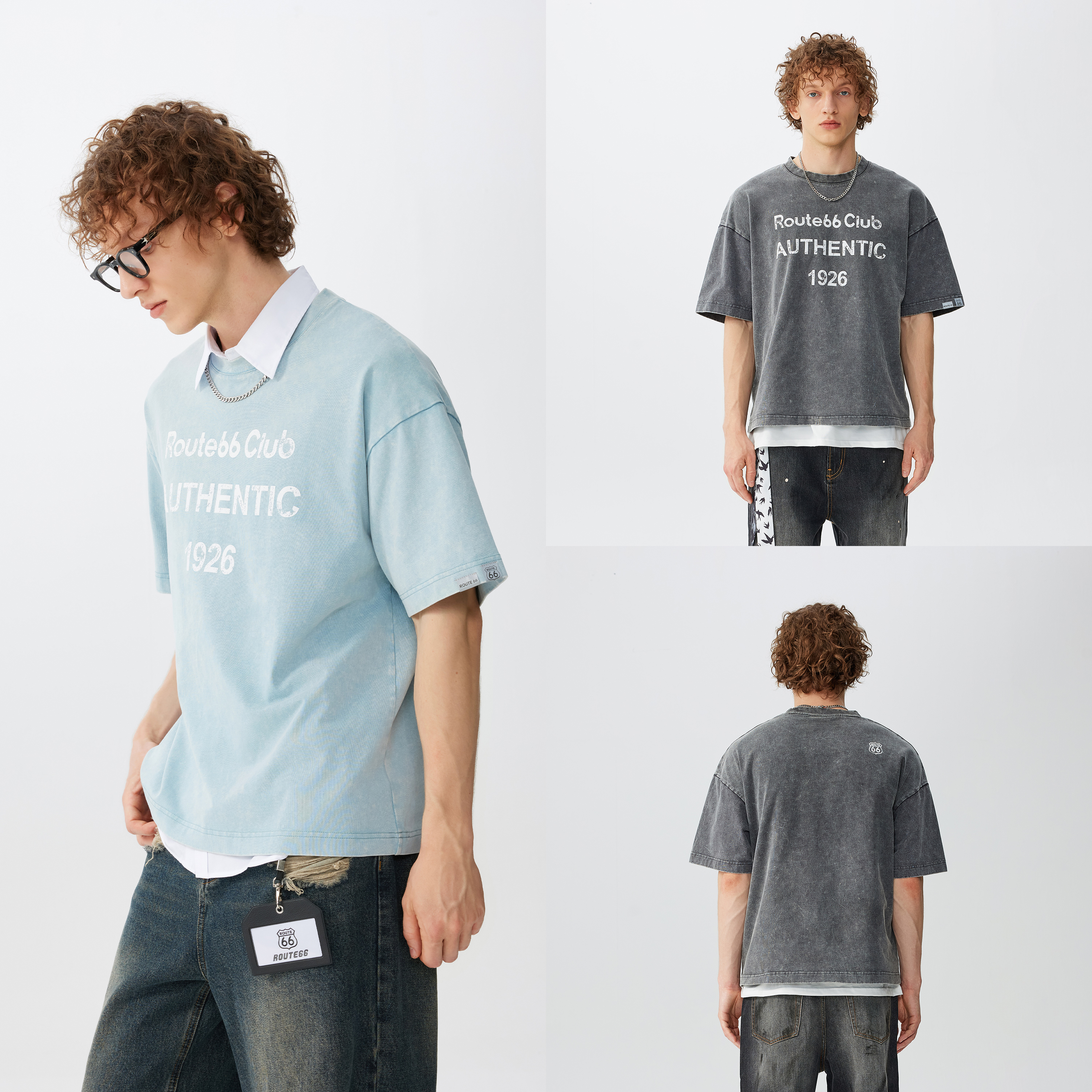 复古短袖 Route66 情侣美式 夏季 男字母做旧水洗t恤潮 66号公路新款