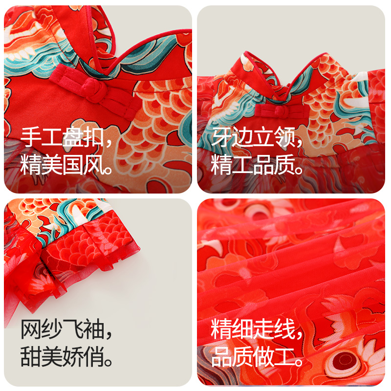 中式 名媛气质设计感红色吊带开叉长裙女 复古挂脖连衣裙女2024夏季