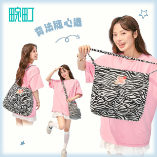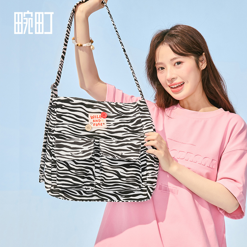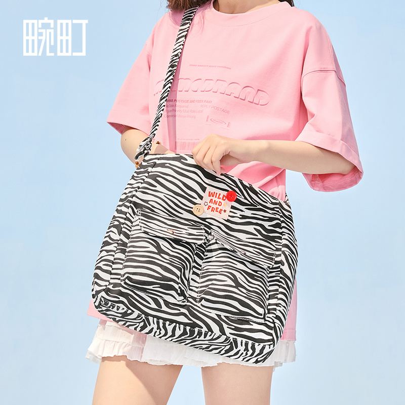 畹町斑马纹帆布包女大学生上课包包大容量轻便休闲单肩斜挎尼龙包