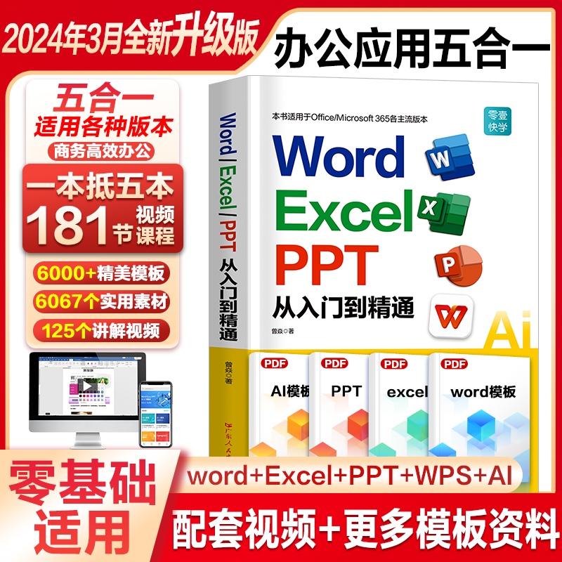 ppt excel wps AI电脑办公软件从入门到精通书 应用大全教材文员 2025 学习office表格制作教程书籍计算机函数公式 零基础word