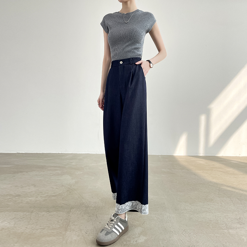 女夏季 秋季 2025新款 阔腿裤 黑灰色百搭宽松显瘦窄版 高腰直筒牛仔裤