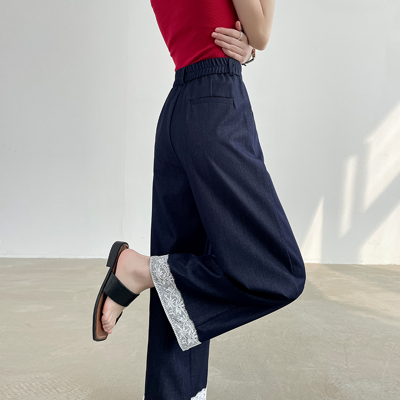 A3HAE4275 太平鸟prince联名合作系列2025秋季 高腰拼接阔腿牛仔裤