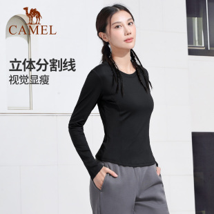 纯色长袖 骆驼瑜伽T恤女秋季 显瘦款 保暖健身运动上衣圆领修身 时尚