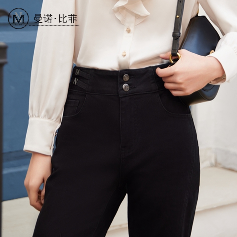 时尚 森柔牛仔 女士潮流秋休闲简约小直筒裤 女磨毛长裤 森马牛仔裤