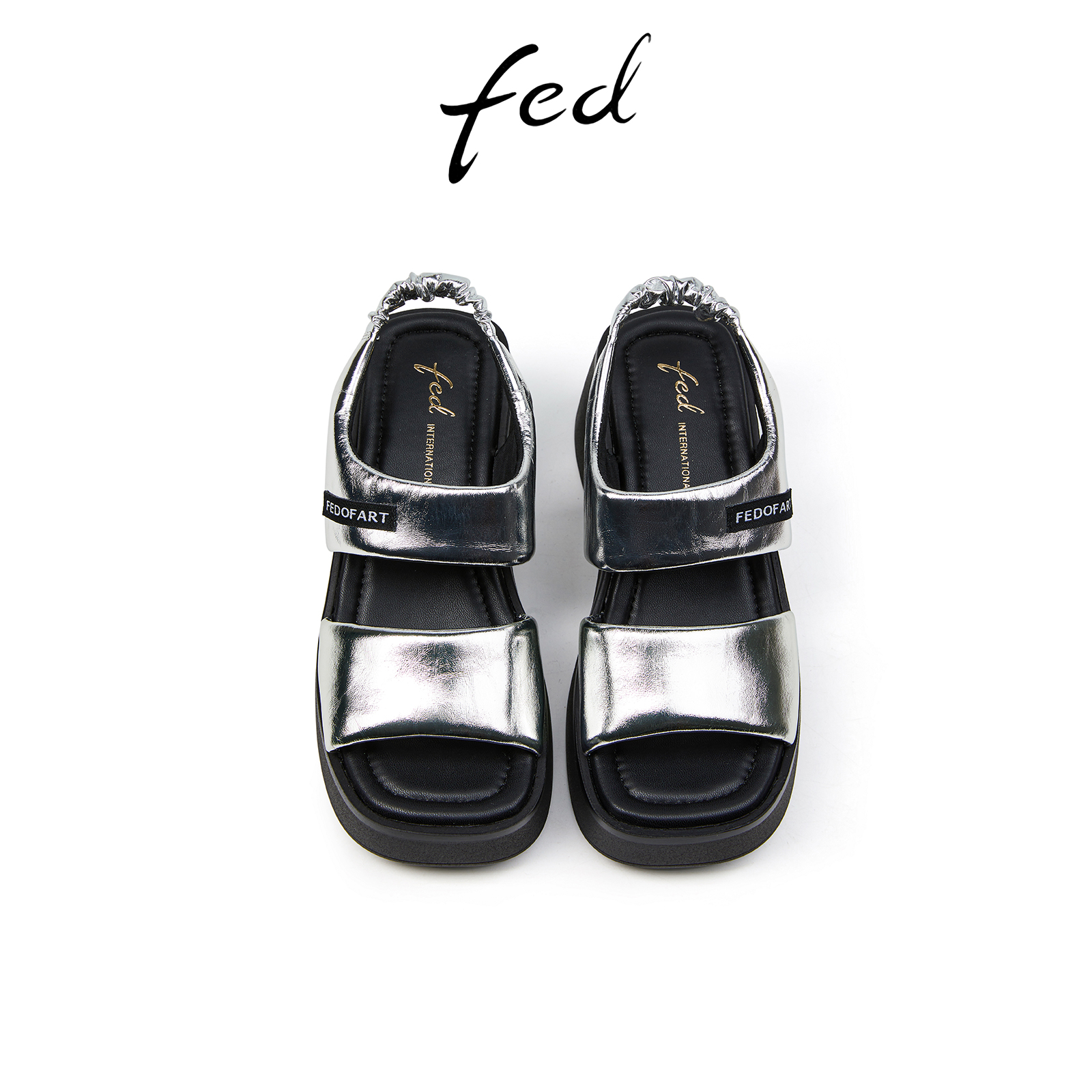 女鞋 新款 一字带粗跟沙滩凉鞋 女款 YA653 fed厚底银色凉鞋 D0617 夏季