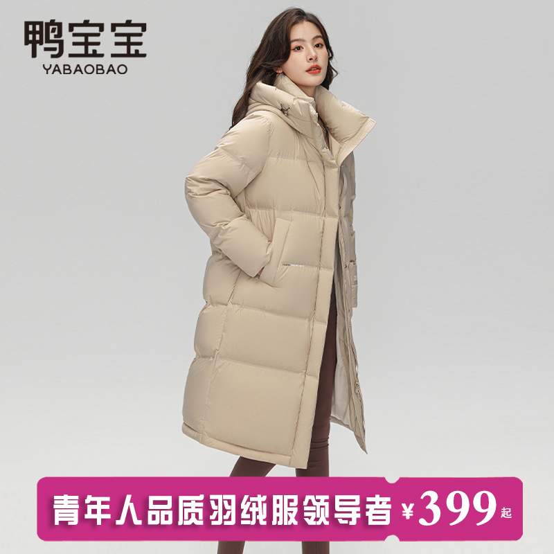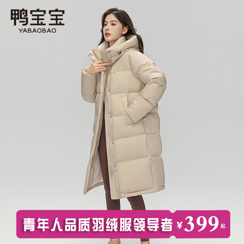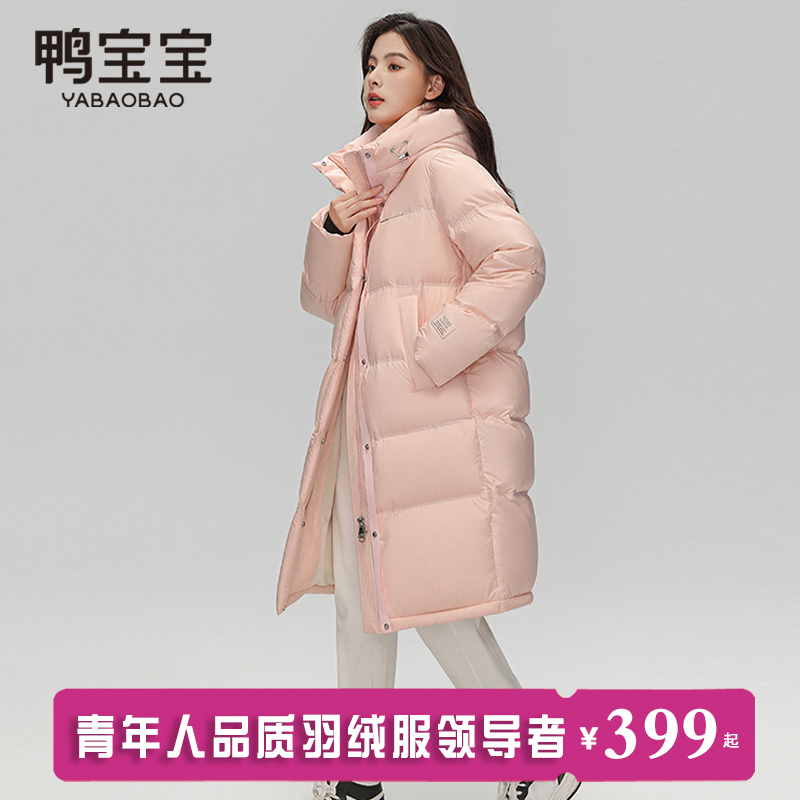 过膝休闲时尚 鸭宝宝羽绒服女冬季 连帽韩版 2024新款 保暖外套 中长款